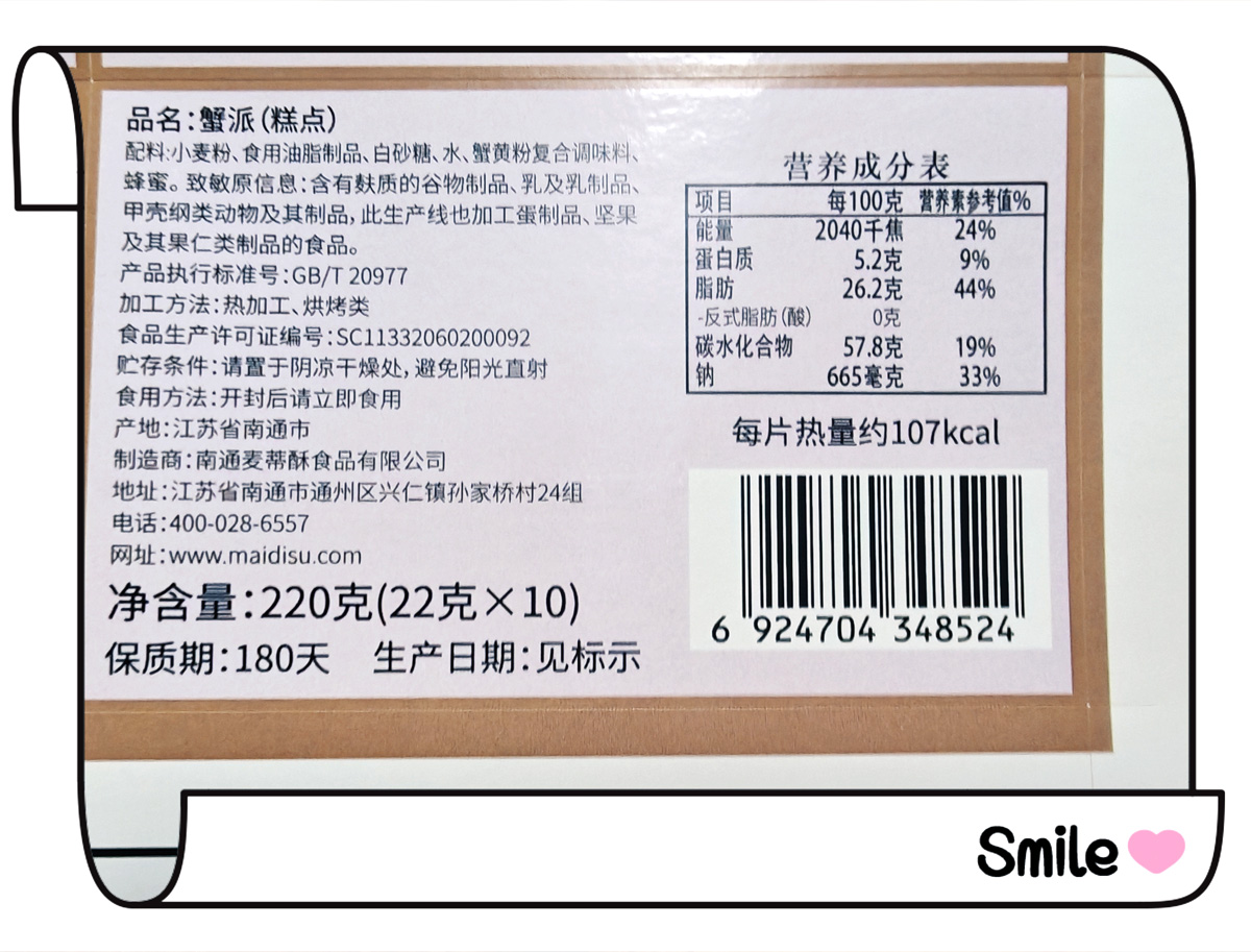 麥蒂酥蟹派特選優(yōu)質(zhì)小麥粉,融入上等蜂蜜烤制而成,造型獨特,金黃酥脆,清新自然~